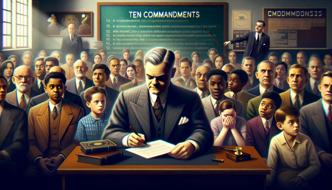 המושל של לואיזיאנה, ג'ף לנדרי, מפלגת הרפובליקאים, גרם לסערת רוח על ידי חתימת חוק שמחייב את תצוגת עשרת הדיברות בכל כיתה בבתי הספר הציבוריים ברחבי המדינה. טקס החתימה נמסר על ידי אירוע בלתי צפוי כאשר ילדה צעירה התעלפה מאחורי המושל בעת חתימתו על החוק. המבקרים הפגינו נגד הצעד כצעד לעבר 'תאוקרטיה נוצרית' והביעו דאגות לגבי חוקיותו. תומכי החוק, כולל צורכו, הביעו הפתעה מהזעם הלאומי שהוא גרם, והגנו עליו כמנחה מוסרית. האירוע והחוק עצמו הפכו לנקודת מוקד לדיון רחב יותר על הפרדת בין כנסייה למדינה ועל תפקידה של הדת בחינוך הציבורי.